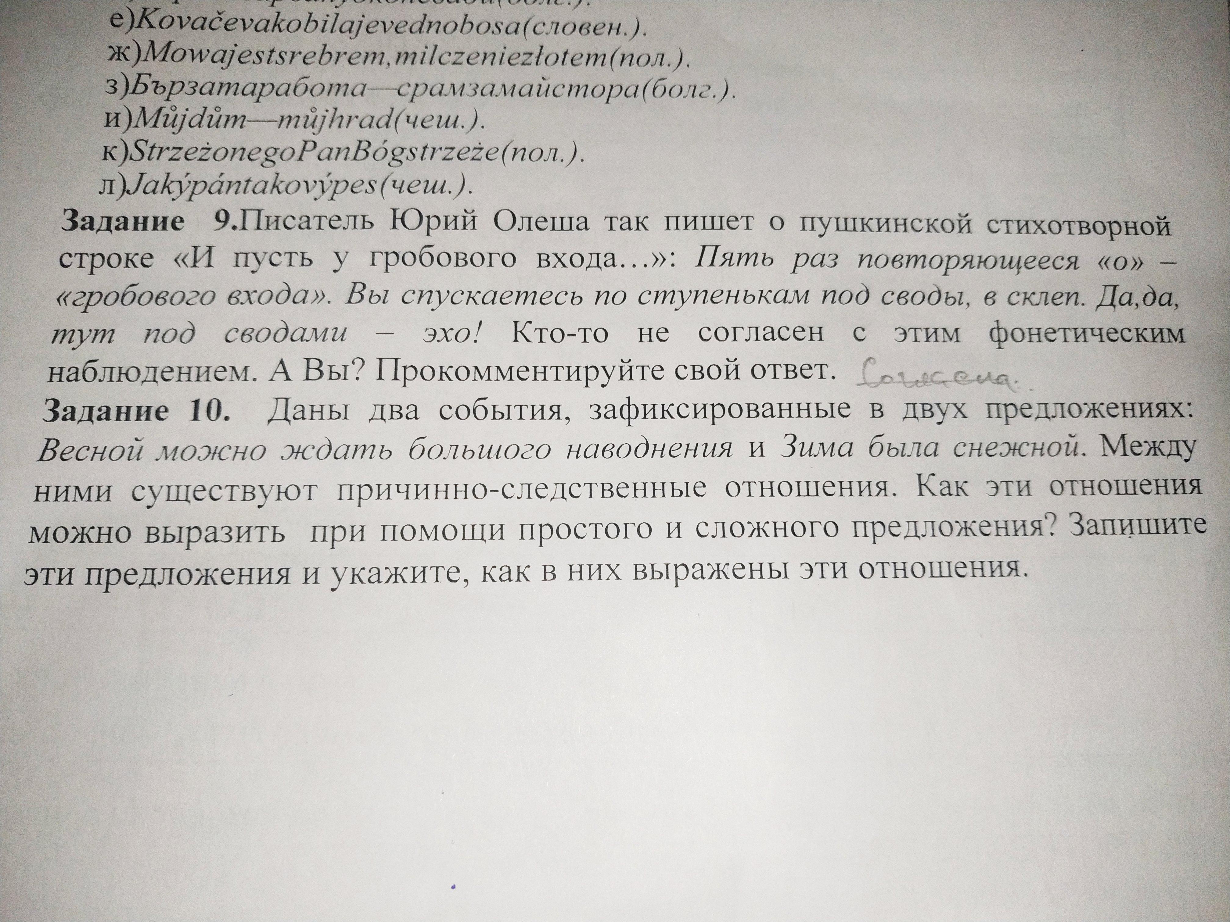 Ответ:слож: Весной можно ждать большого наводнения, потому что зима была снежной.