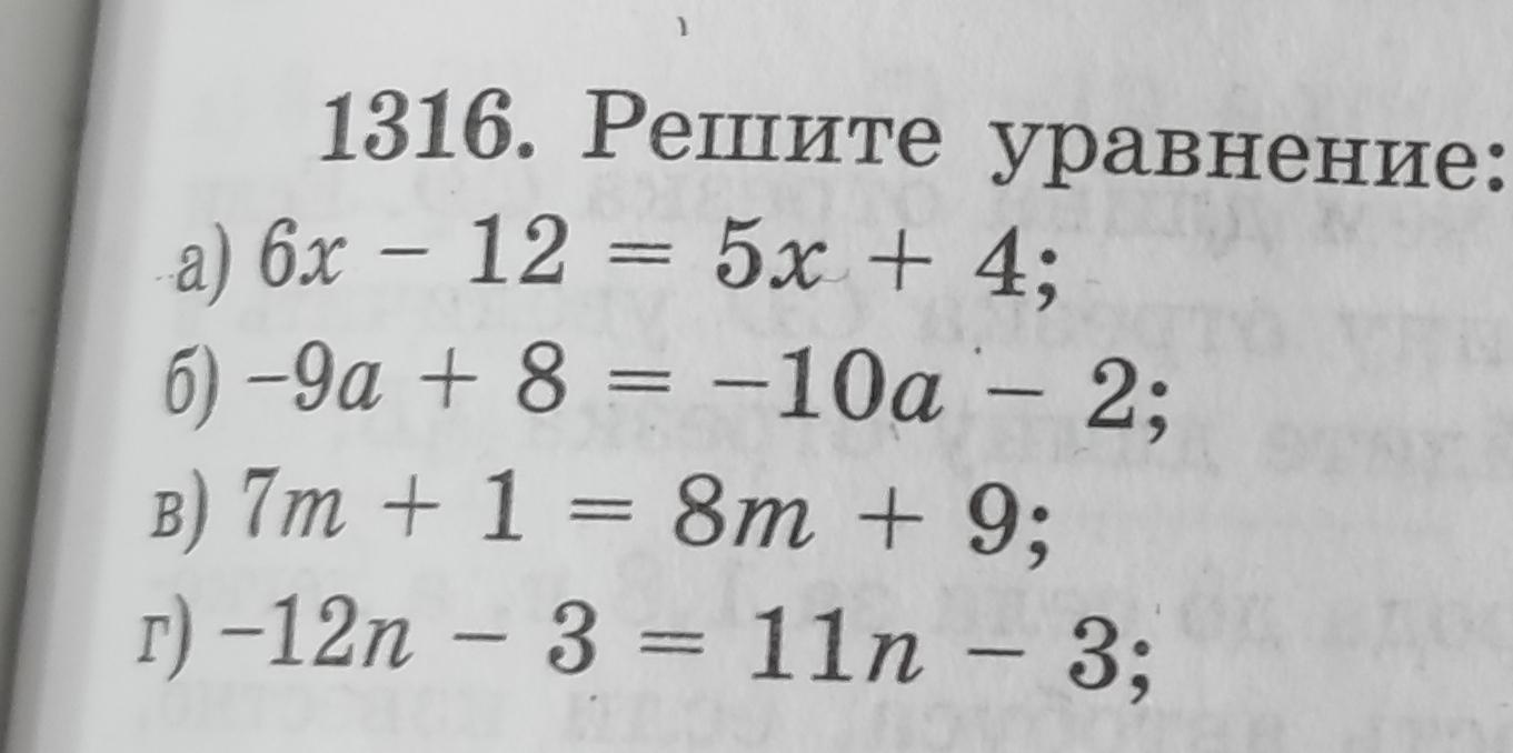 a) 6x-12=5x+4