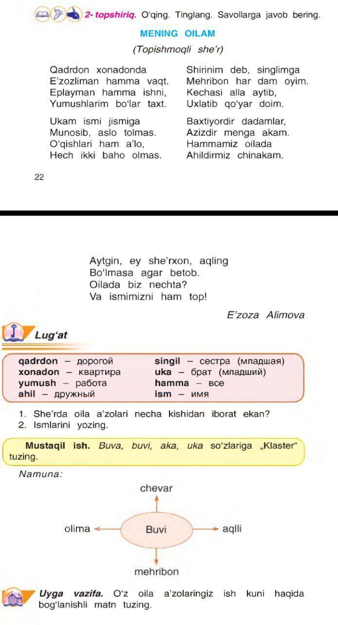 2)Men-E'zoza, singlim- Shirin, Baxtiyor-dadam, Aziz-akam