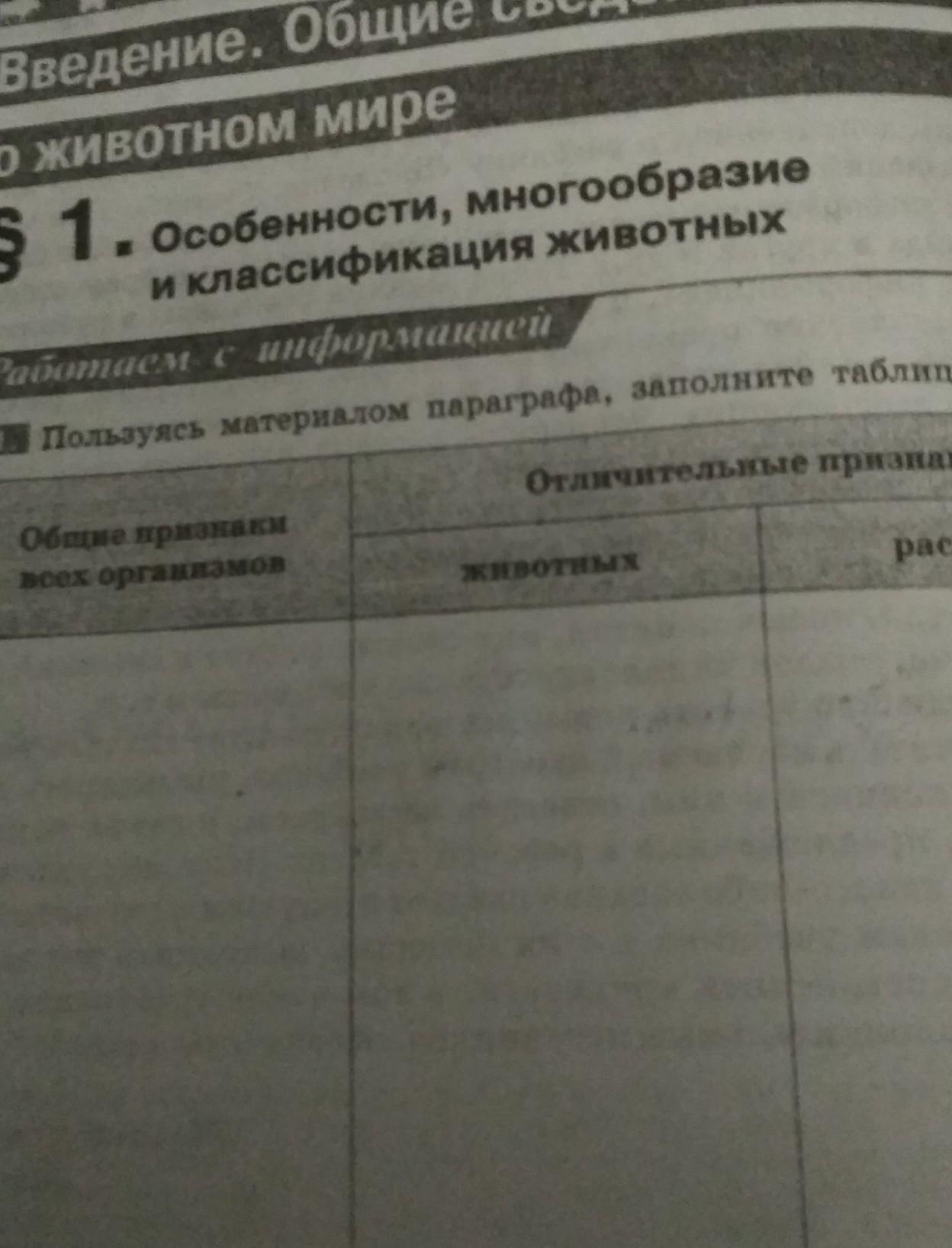 Ответ: общие признаки всех организмов: обмен веществ (питание, дыхание, выделение), размножение, рост, развитие, наследственность, изменчивость, адаптация,клеточное строение. Животные: большинство активно передвигаются, имеют органы чувств, питаются только готовой органикой, не имеют клеточной стенки и пластид. В качестве запасного углевода используют гликоген.
