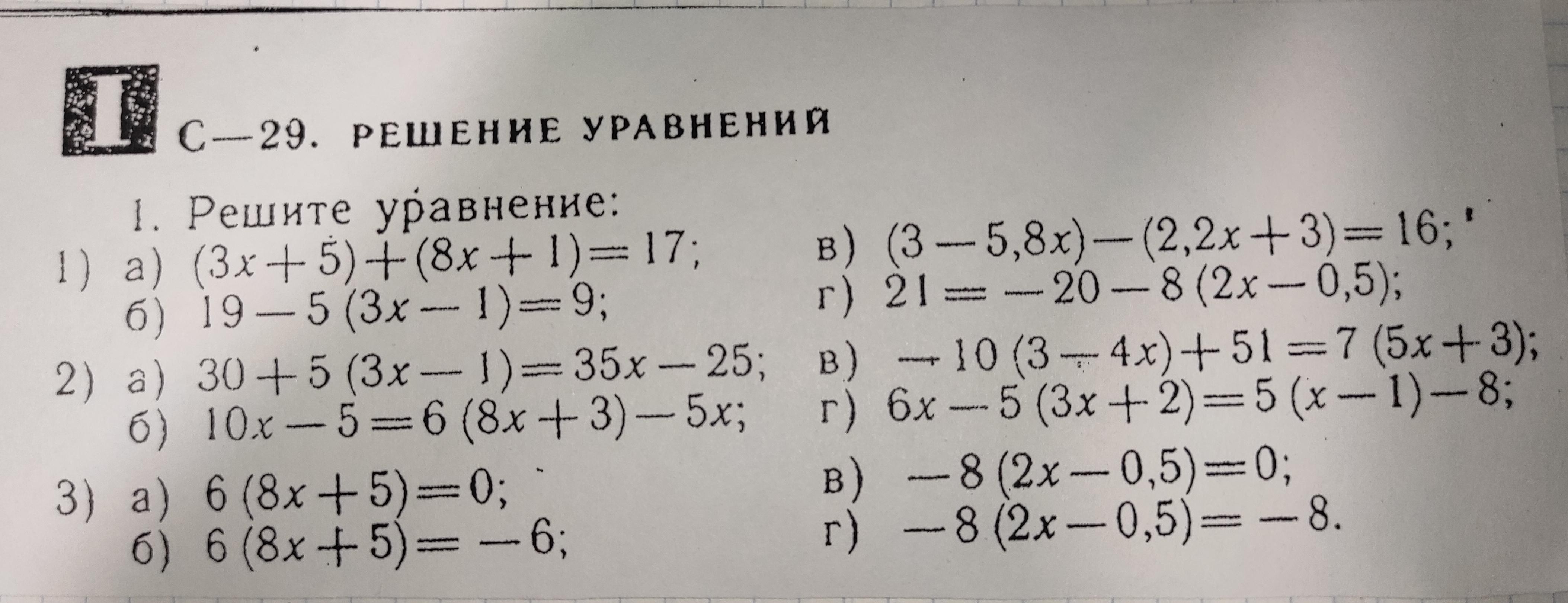 г) 21= –20–8(2х–0,5)