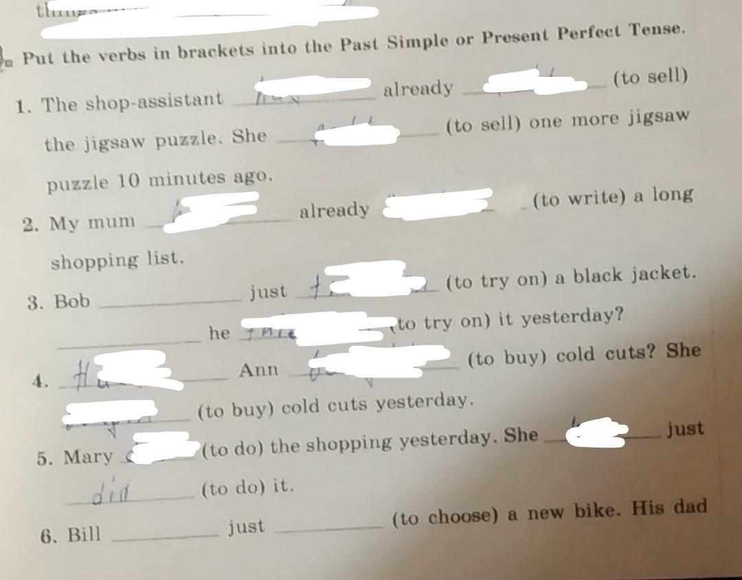 Bob have just tried on a black jacket. Did he tried on yesterday?