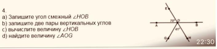 сложи углы AOE и GOH полученный ответ выйти из 180 градусов