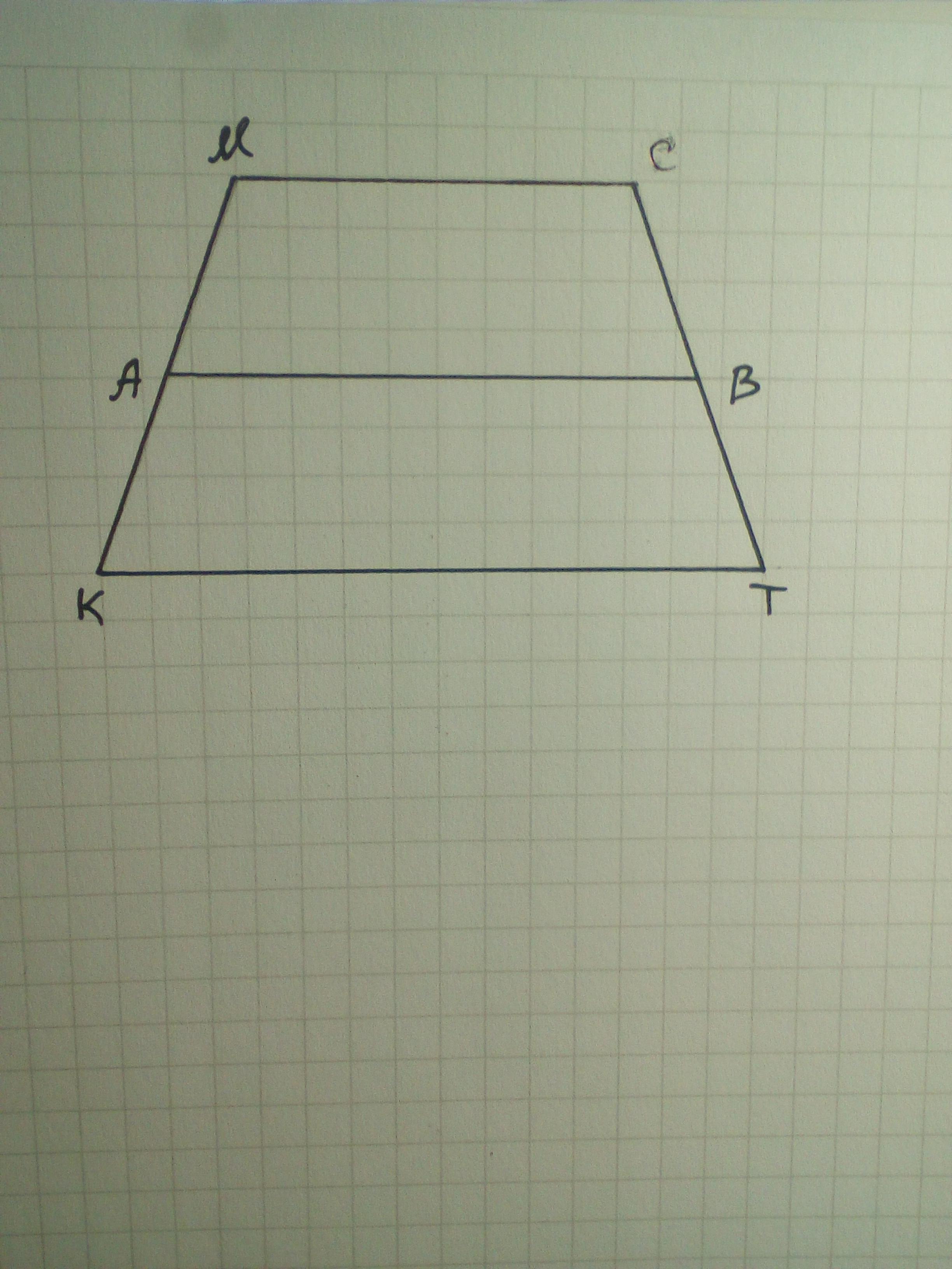 АВ=(МС+КТ):2 по определению средней линии трапеции.