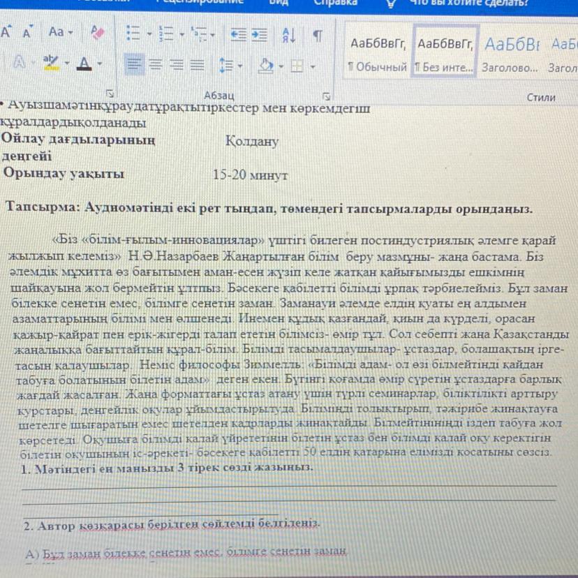 1 Мәтіндегі ең маңызды 3 тірек сөзді жазыңыз