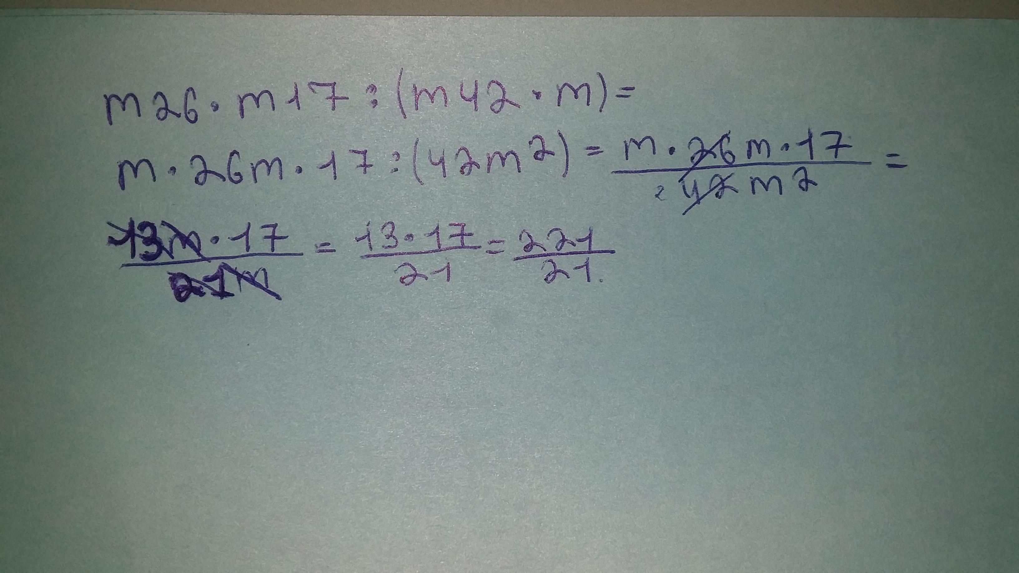 m^26• m^17: (m^42• m) = m^26• m^17: (m^42• m) = m^(26+17) : m^(42+1) = m^43 : m^43 = 1.