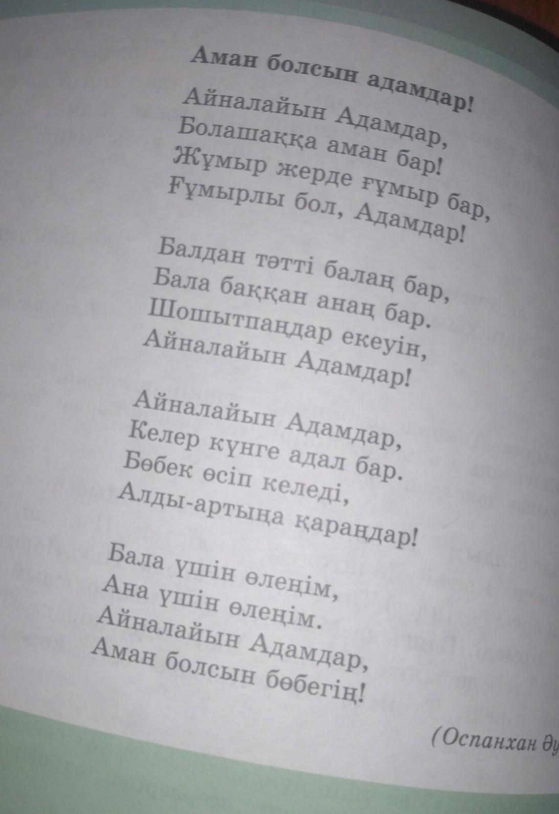 2-тапсырма. Өлеңді дауыс ырғағына салып, мәнерлеп оқы. Өлең мәтіні