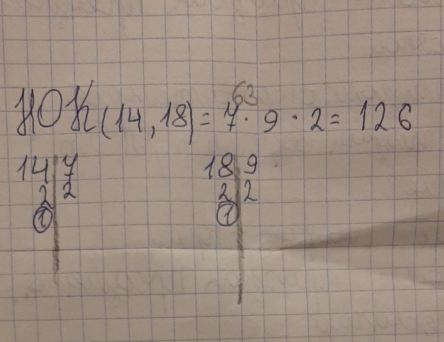 НОК(14,18)=2×3²×7=126