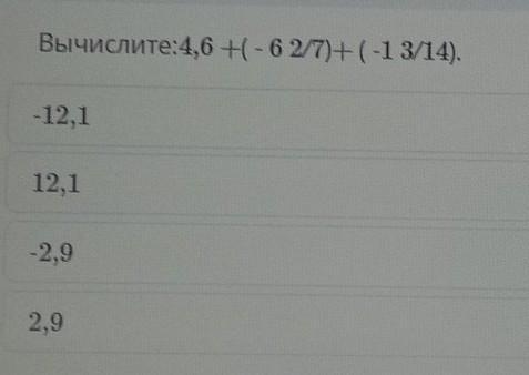 Вычислите:4,6 + - 6 2/7)+(-13/14)