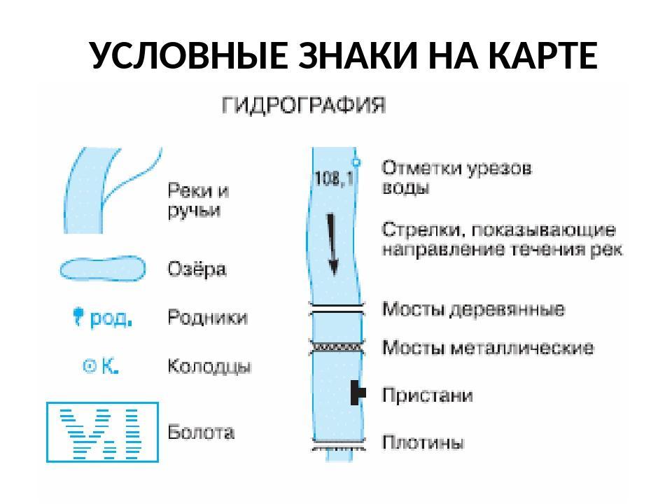 Река условным знаком обозначается голубой полоской