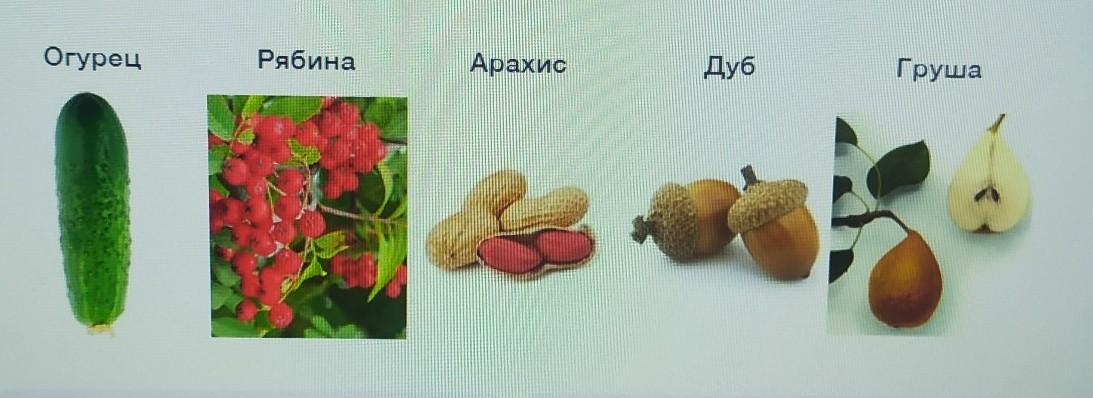 Плоды: Боб; Жёлудь; Тыквина; Костянка; Яблоко.