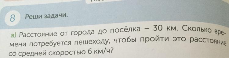 - В данной задаче нам дано S = 30 км, а также v=6 км/ч.