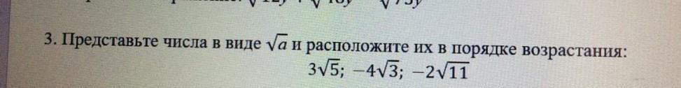 Представьте числа в виде корня и Расположите их в порядке возрастания минус 3 корень 5, - 4 корень 3 - 2 корень 11