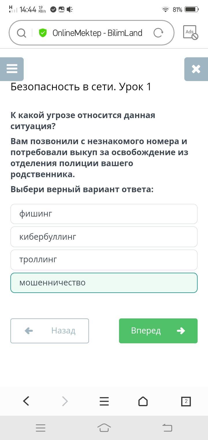 Выбери верный вариант ответа:
