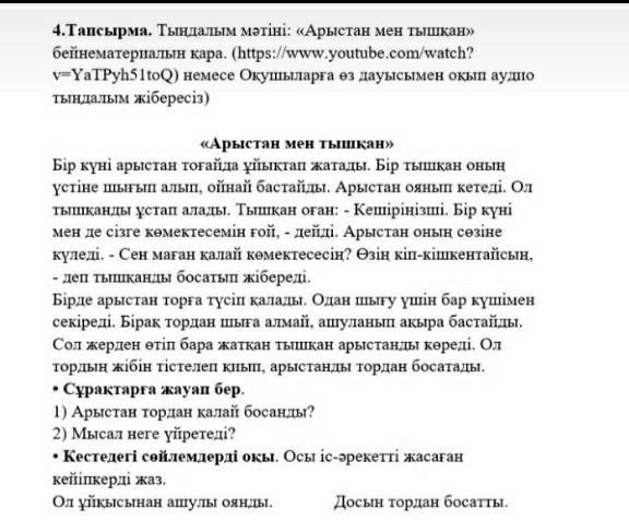 Ответ:1:Тышқан арыстанға торды тістеп ашып көмектеседі