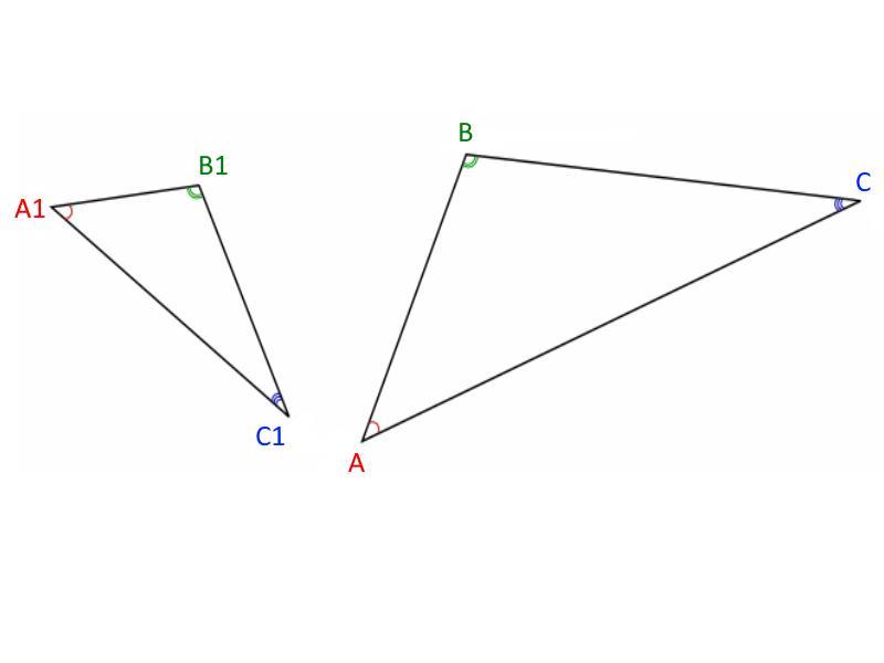 По третьему признаку подобия треугольников: Если три стороны одного треугольника пропорциональны трём сторонам другого треугольника, то они подобны.