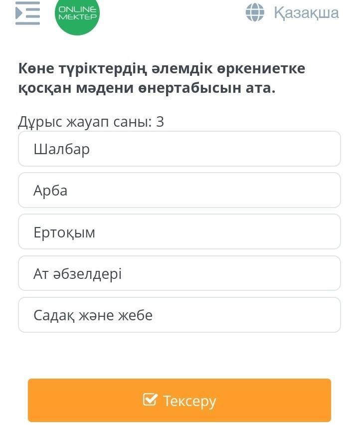 садақ пен жебе,арба,ат әбзелдері болады