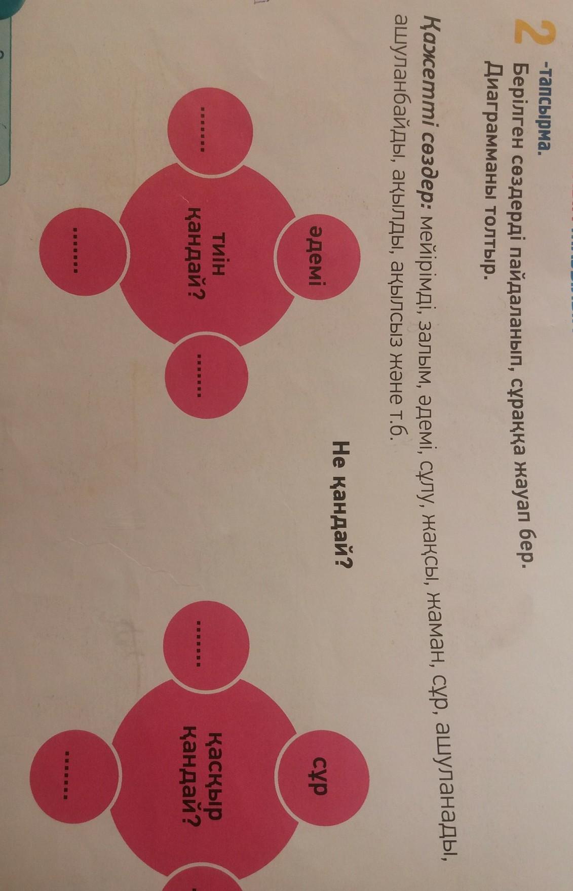 Қажетті сөздер: мейірімді, залым, әдемі, сұлу, жақсы, жаман, сұр, ашуланады,
