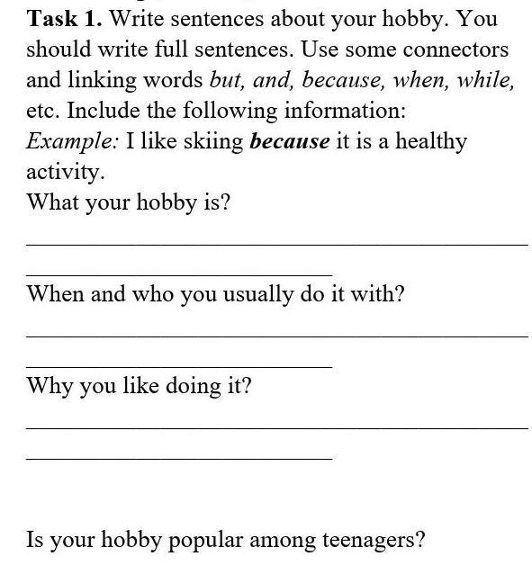I really like to draw, it is my hobby. I started to draw when i was 3 y.o. My friend (имя своего друга) shares my interest, we often draw together. I can’t say what i like more, because i love collecting and making things both. but sometimes i prefer making things because it is interesting to create something new. I think that my hobby is connected with my future profession, because i want do be a designer.