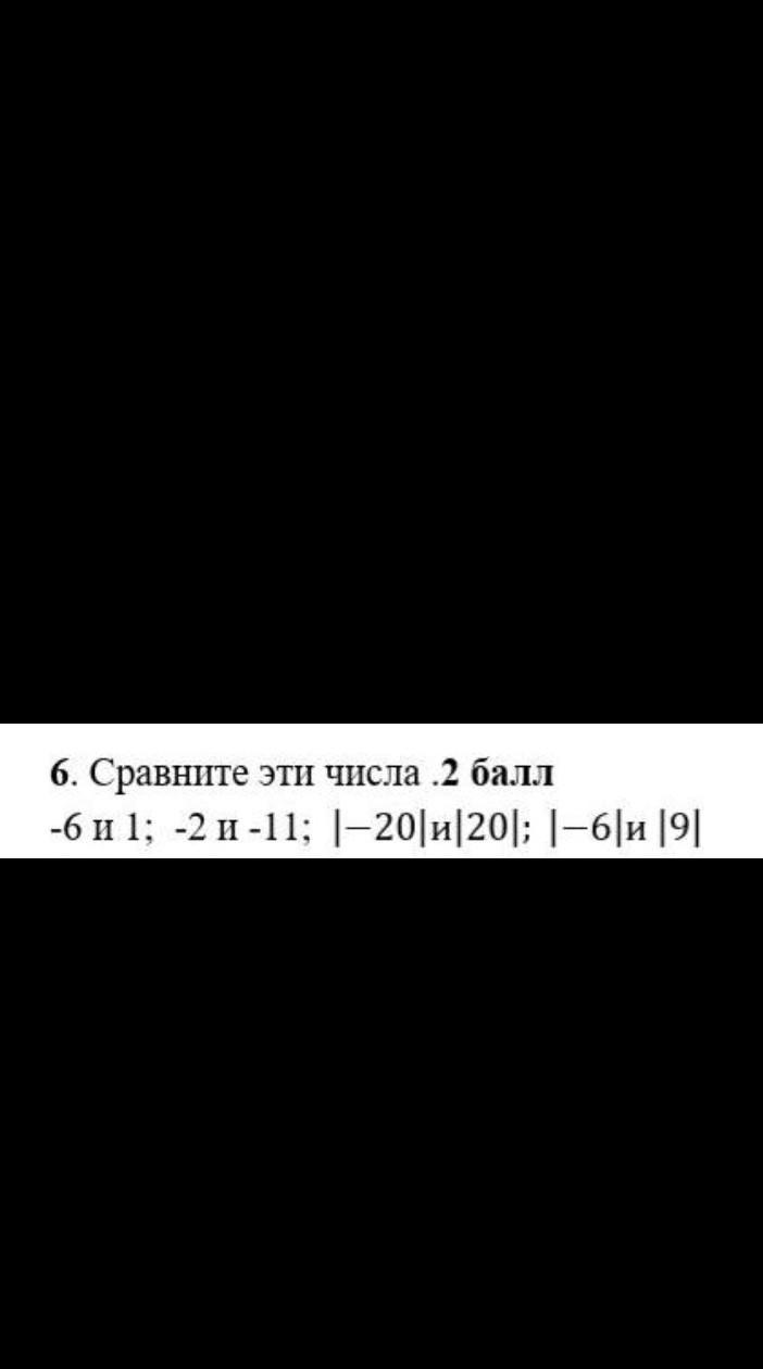 -6<1; -2>-11; \-20/ =/20/; /-6/</9/