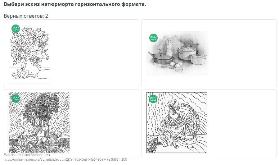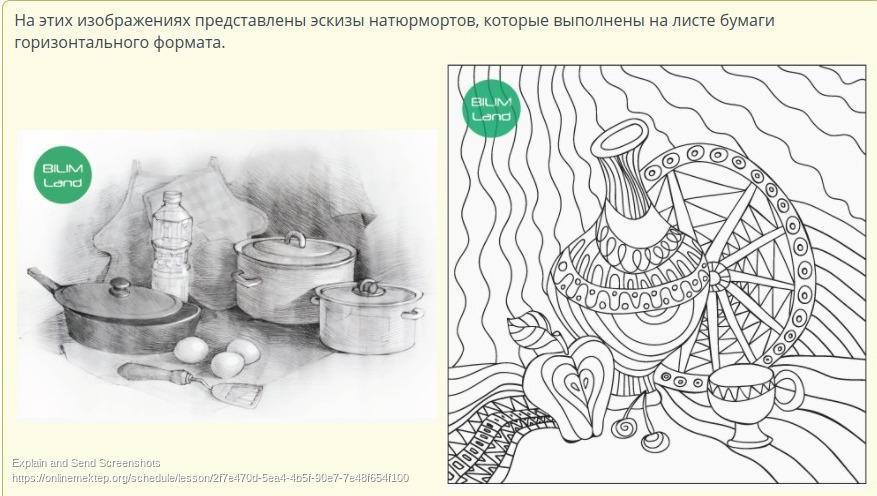 Выбери эскиз натюрморта горизонтального формата.