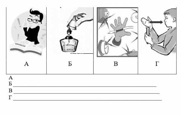 По рисункам сформулируйте правила техники безопасности при проведении научного эксперемента