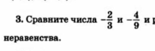 помогите мне пж!! Сравните числа 2|3 и 4|9 и результат запишите в виде неравенства!