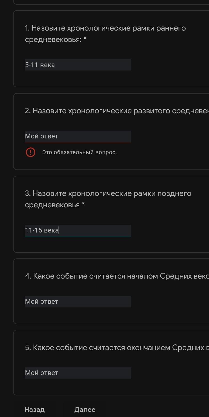 1) Раннее средневековье - время формирования феодального способа производства, V-XI вв.