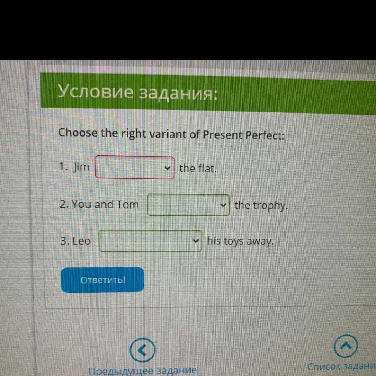 Варианты ответа на первый вопрос: has tidied/have tidied.