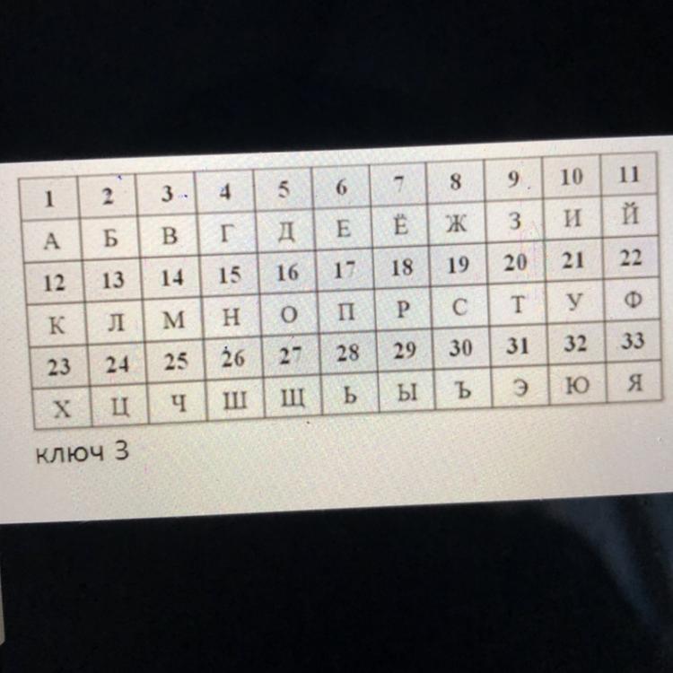 Если у тебя записан ключ 3, это значит при шифровании загаданной буксы , ты указываешь третью букву от нужной например слово дом Д-пятая буква ,у тебя ключ 3, значит пишешь восьмую букву