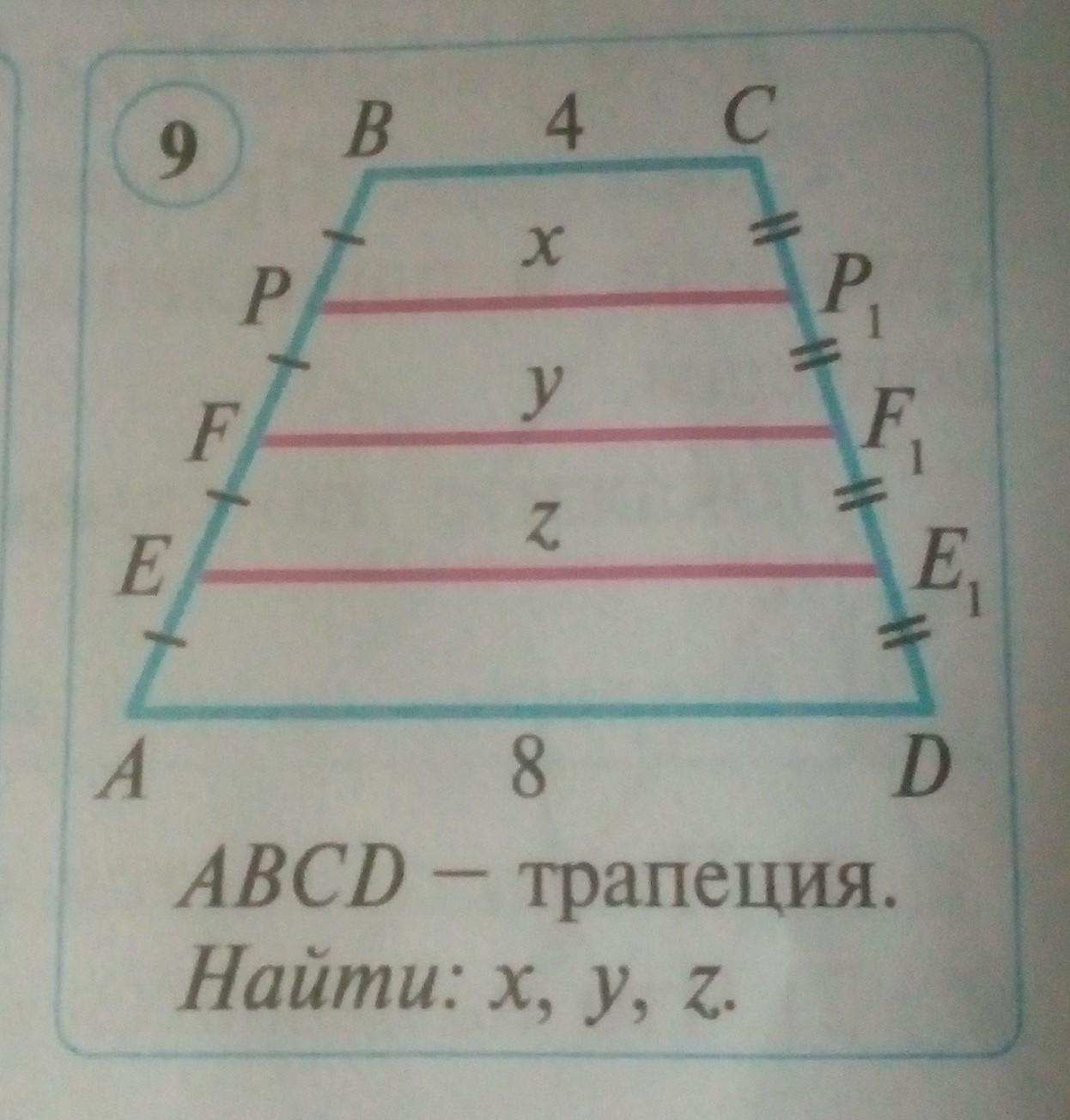 AE = EF и DE1 = E1F1 (дано) => z = (AD + FF1)/2 = (8+6)/2 = 7 ед.