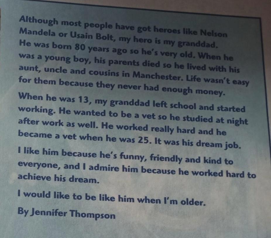 1 Who is Jennifer's hero? 4 Why is he a hero?