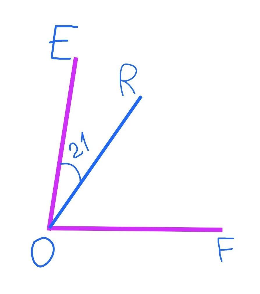 Угол ROF в 3 раза больше угла ЕОR, тогда угол ROF=21°*3=63°.