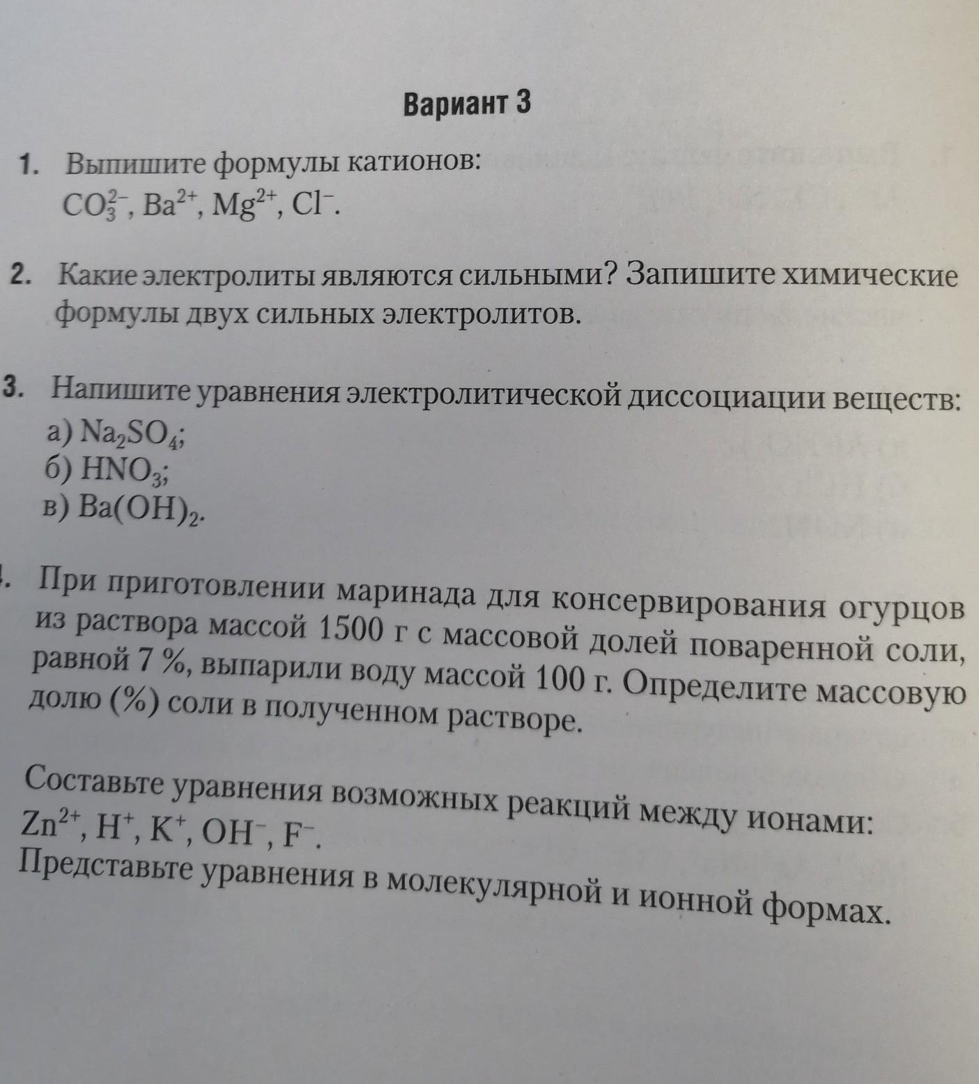 1) Ba2+; Mg2+