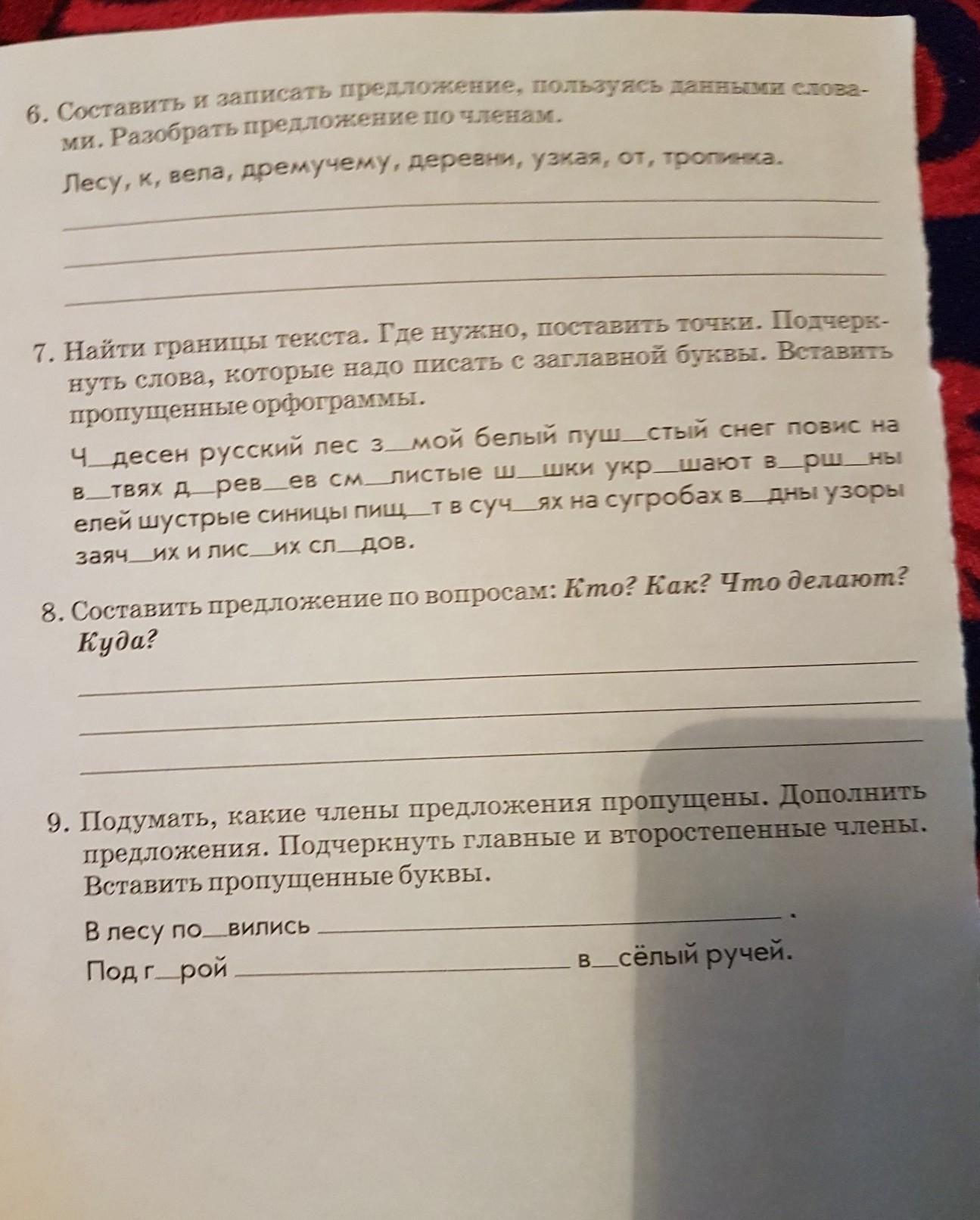 7: Чудесен русский лес.Зимой белый,пушистый снег повис на ветвях деревьев.Смолистые шишки украшают вершины елей.Шустрые синицы пищат в сучьях,на сугробах видны узоры заячьих и лисьих следов.