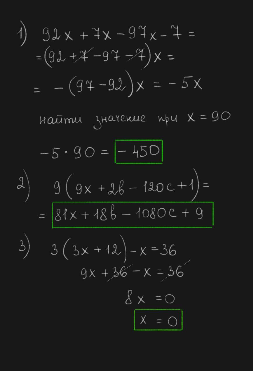 Упростить выражение, затем найди значение 92х+7х-97х-7, при =90