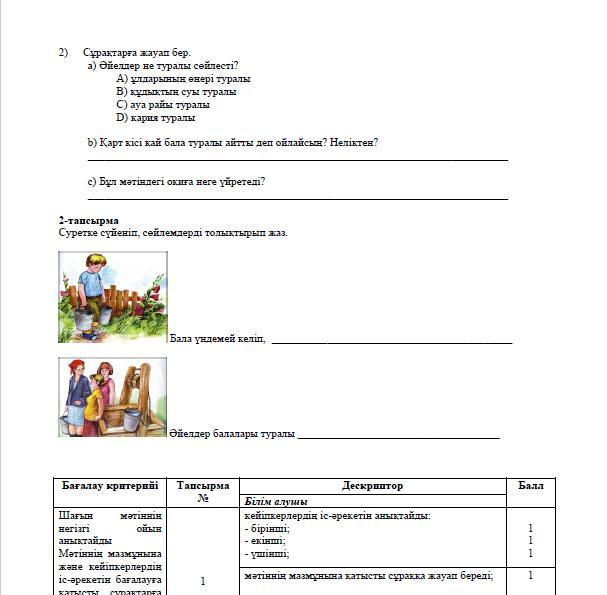 С)Қарт 3 бала туралы айтты.Өйткені ол анасына көмектесті,ал басқа ұлдар аналарына көмектескен жоқ.