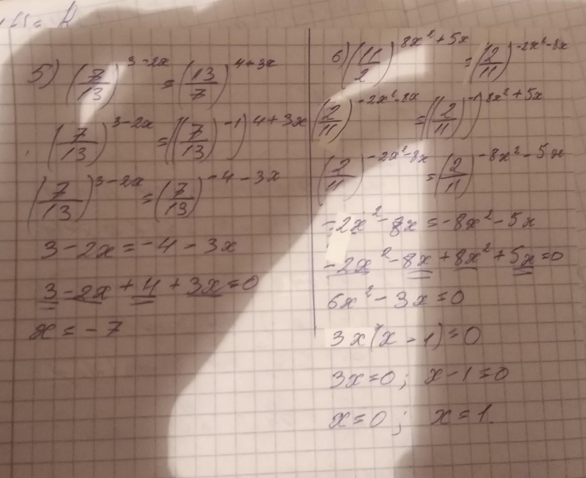 5) (7/13)³⁻²ˣ=(13/7)⁴⁺³ˣ