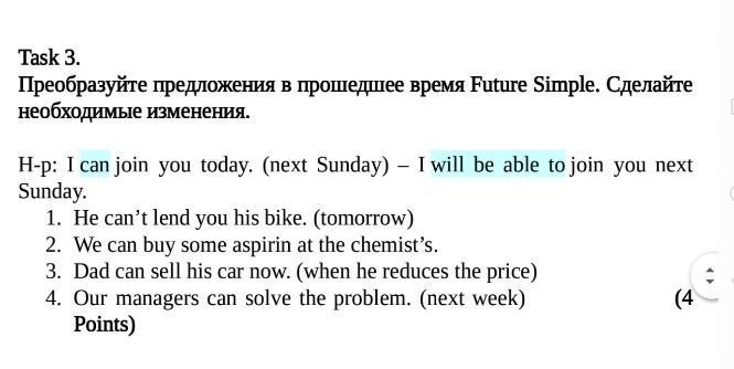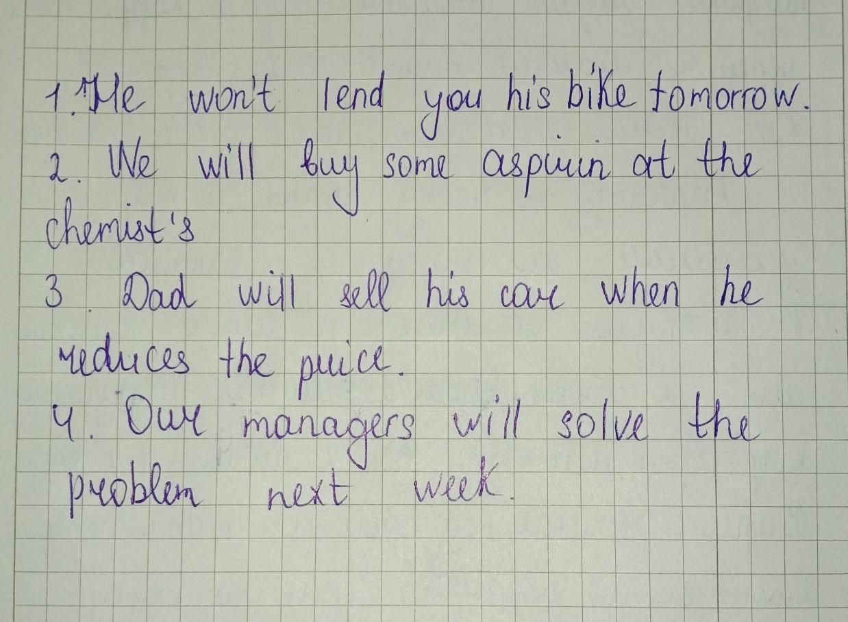 или 1 ый можешь делать вот так:1.He will not lend you his bike tomorrow как хочешь