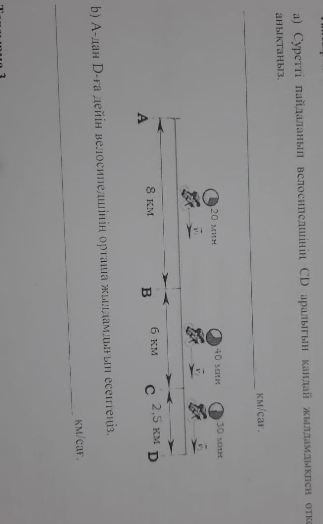 А дан Д дейінгі велосипедшінің орташа жылдамдығын есептеңіз