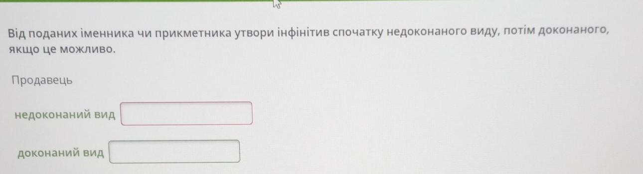 Недоконаний вид: ПРОДАВАТИ (недовершена дія)