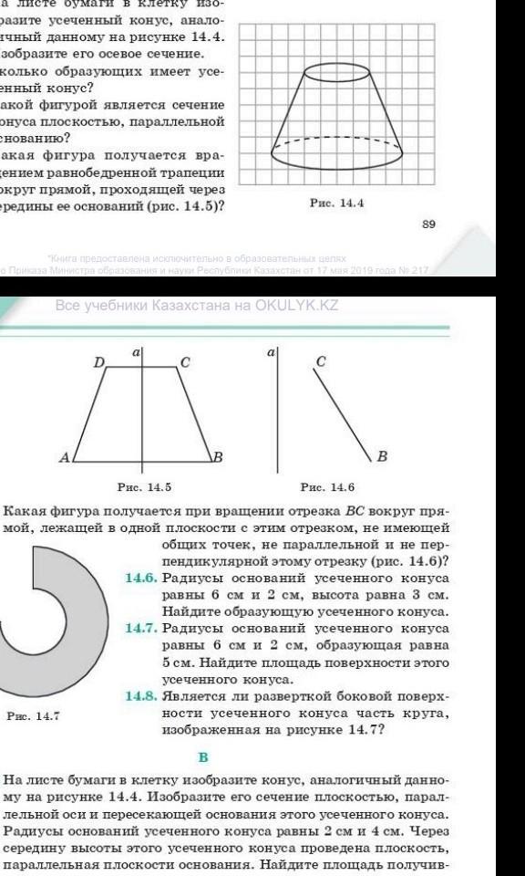 S= п*L(R+r) +п*(R^2+r^2) = 3.14*5*(6+2) + 2*3.14*(6^2 + 2^2) =376.8 см