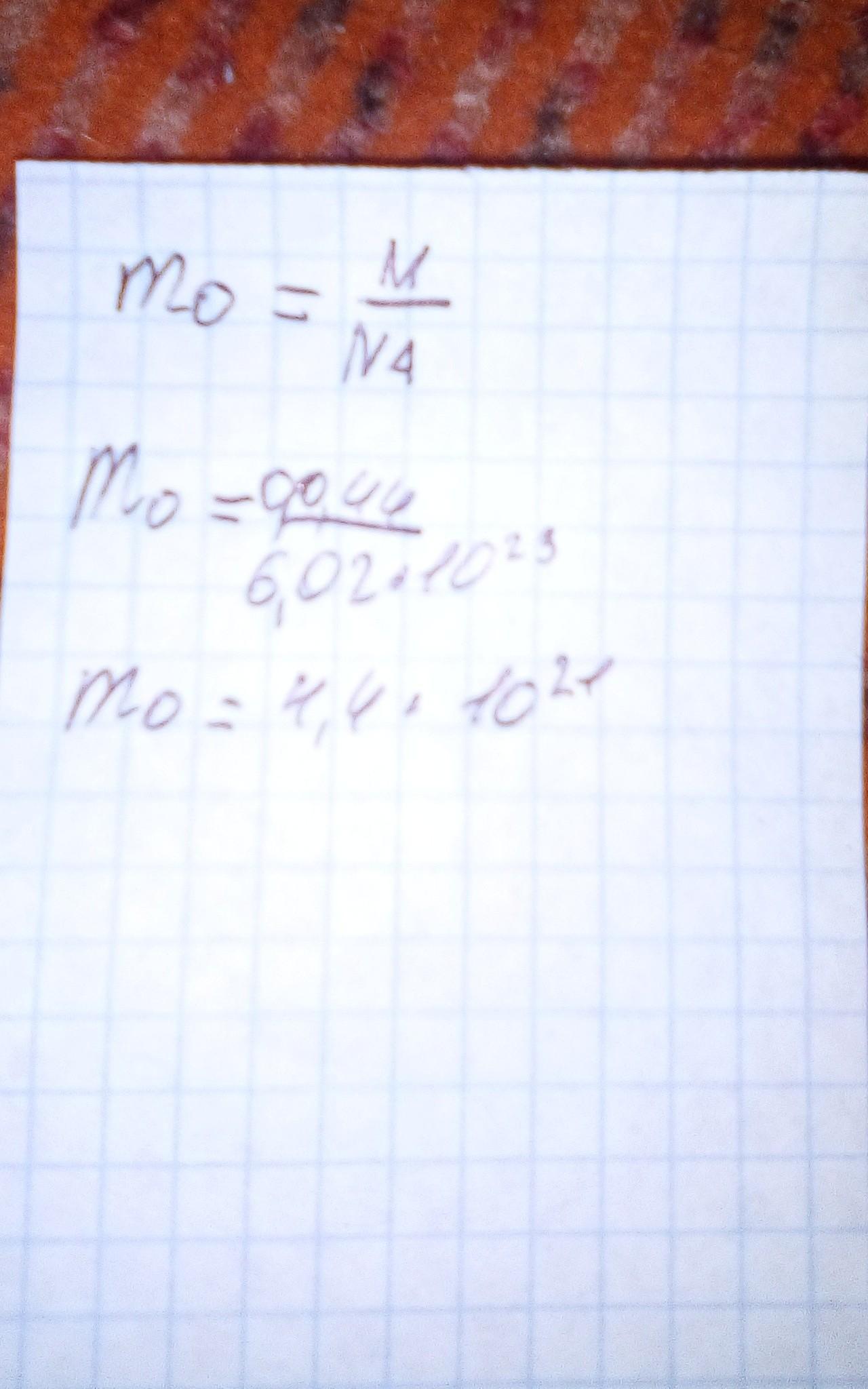 3)m=M/Nа= 40*10^-3/6,02*10^23 =6,65*10^-26 кг