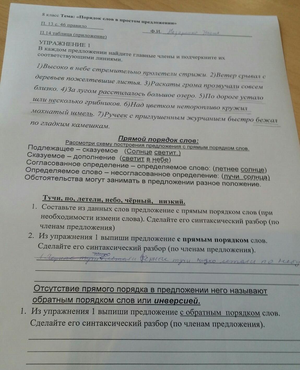 1. Черные(~~~) низкие(~~~) тучи летели(=) по небу (_._._).