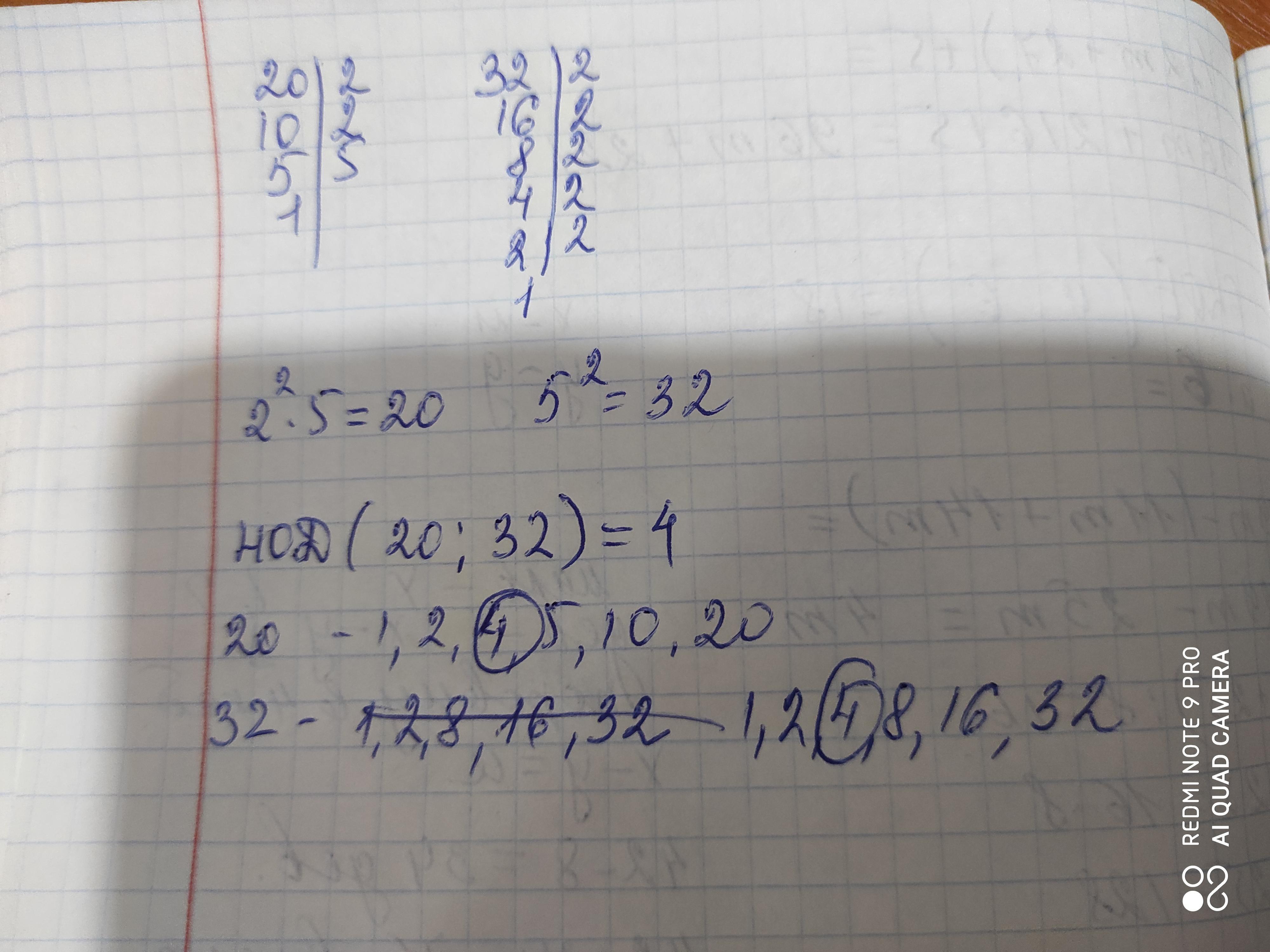 b) Найдите наибольший общий делитель и наименьшее общее кратное чисел 20 и 32. помогите пжжж разобраться