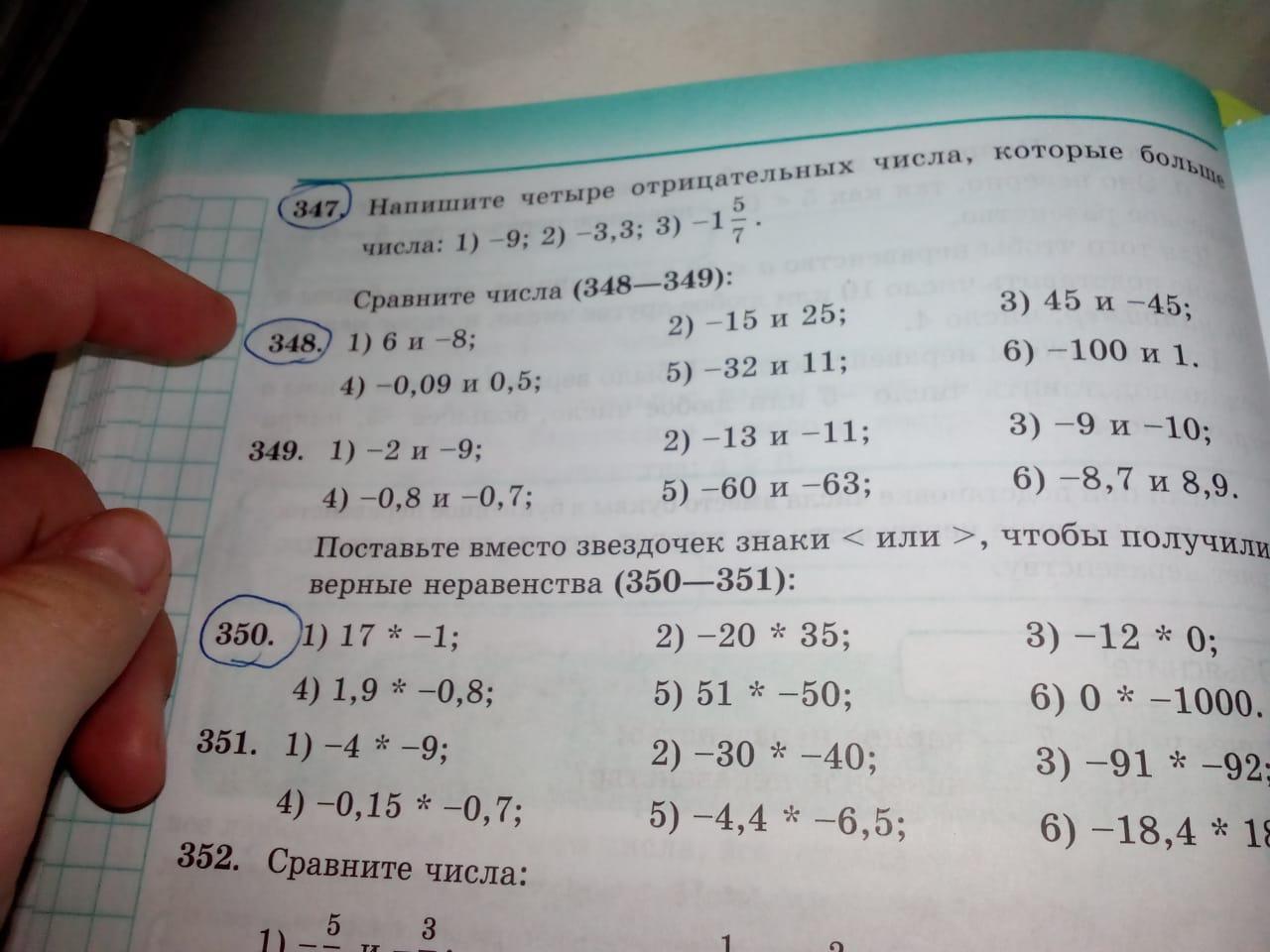 Сравните числа (348-349):1)6и-8;2)-15и25;3)45и-45;4)-0,09и0,55)-32и11;6)-100и1 плиз срочно номер 348