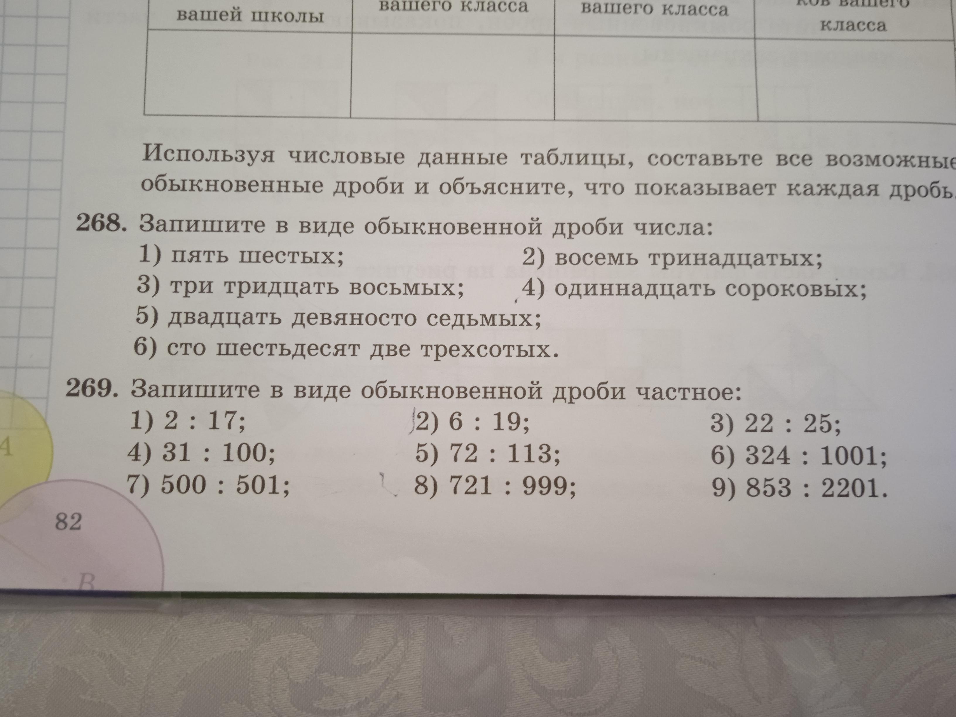 268: 1)5/6; 3) 3/38; 2) 8/13; 4) 11/40; 5) 20/97; 6) 162/300