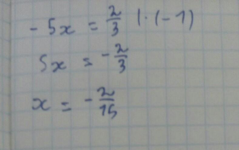 Решите уравнение -5х=2/3 укажите два целых числа между которыми находиться его корень