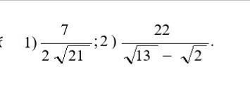 а) 7/(2√21) = (7•√21)/(2√21•√21) = 7√21/(2•21) = √21/(2•3) = √21/6.