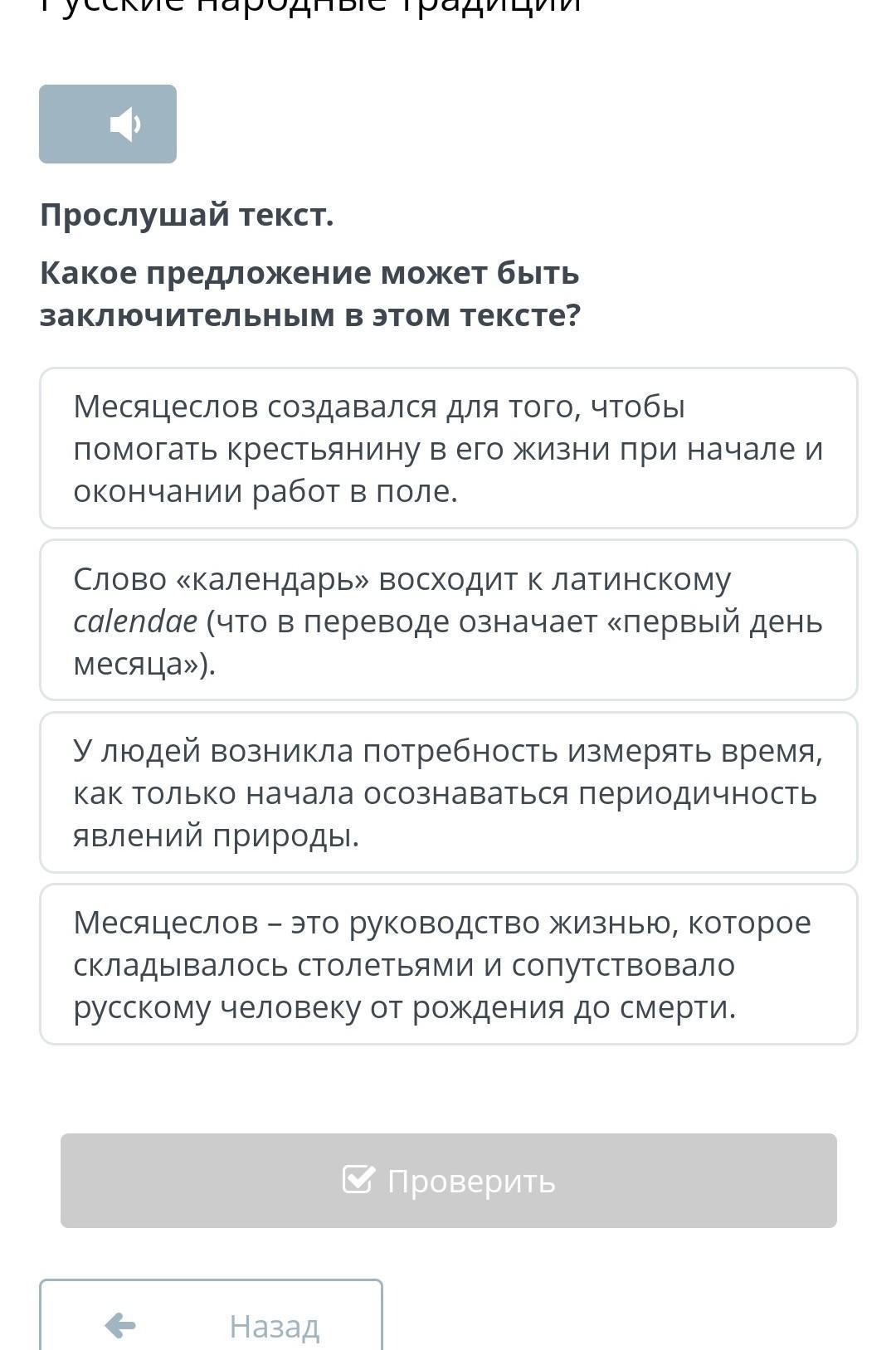 Русские традиции.Прослушай текст .Какое предложение может быть заключительным в этом тексте. Ответьте пожалуйста
